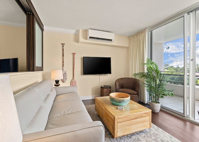 Julia B. from Tauranga, New Zealand, October 19, 2018 Stayed for 3 days in October 2018We really enjoyed sitting out on the lanai and people watching. It was a great place to watch the Friday night fireworks in the rain! We stayed with our 3 older teenagers and they loved having a TV in each room and fast Wifi. Really pleasant new looking apartment, very clean with small kitchen unit for making snacks and keeping drinks cold and coffee making. ABC store and 7-eleven just downstairs for supplies. Very close to the beach and shops.