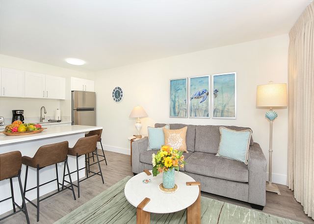 - Living Air Conditioning, Balcony/Lanai, Beach Chairs, Bed linens, towels, beach towels, Coin/Card-Operated Laundry, FREE Onsite Parking, FREE Wi-Fi / High-Speed Internet, Full Kitchen (no dishwasher), Hair Dryer, Handheld Shower Wand, Iron and Ironing Board, Kitchen (no dishwasher), Laundry Facilities on Each Floor, Laundry Facilities on Site, No Smoking, Parking, Parking Included, Queen Bed, Queen Sleeper Sofa, Smart TV, Vacuum Cleaner, Window AC unit