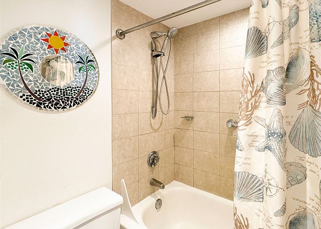 – Shower/tub combo with handheld shower wand